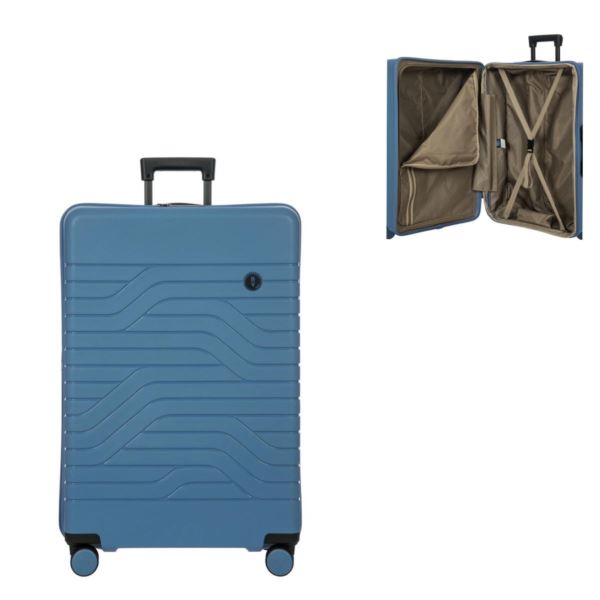 The 30 inch expandable spinner is part of the Ulisse B/Y collection from Bric's. Made out of Polypropylene; this is a very strong, durable and light weight material that guarantees resistance to shocks and scratches. Features include an ergonomic handle and functional 3 stage telescopic handle selected via a press-stud button. The interior has 2 compartments that are fully lined. One side with a full zipper section and mesh pocket, the other with a stretchable strap to hold all your belongings in place, a smaller pocket for smaller accessories and a shoe/laundry bag. Includes a built-in TSA approved lock. It has four double swiveling wheels that give a wider radius allowing an easy 360 degree rotation in all directions. Additional features include an expandable zipper (up to 2 inches), hidden name tag, top carry handle. H 31 in x W 21 in x D 14 in.