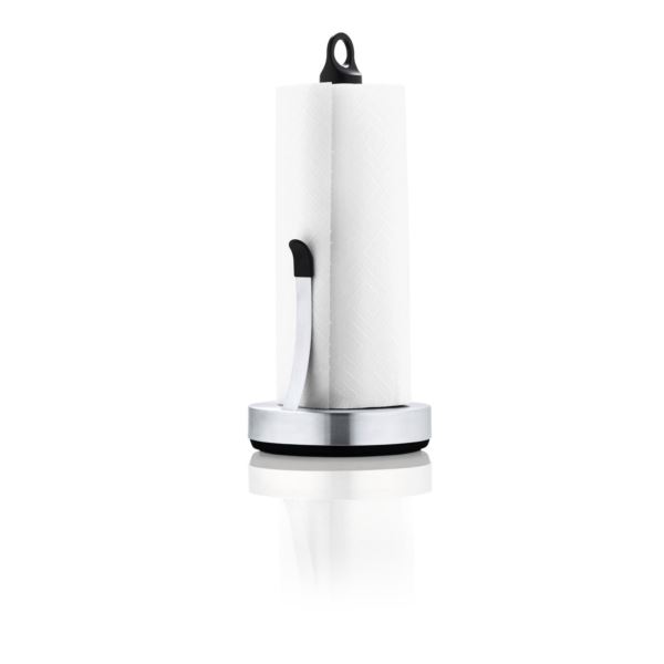 The Loop kitchen roll holder by blomus makes it easy to tear off a paper towel when you need it. The stainless steel base is weighted and features a ridged rubber on the underside to ensure that it grips the table. The roll is held in place thanks to a spring and the paper end is also held in place by a stainless steel arm with a plastic cover to prevent the paper from ripping. 4 lb rubber bottom base. Spring handle keeps paper in place. Loop on top easy to hold or carry. Utilizes standard size paper towel rolls. Designed by Floz Design. H 13.4 in. W 5.91 in. D 5.91 in. and Weight 4.16 lbs.